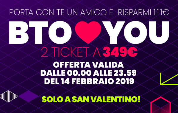 Potrai partecipare al prossimo BTO con un amico, un collega o la tua dolce metà e vivere con lui (o lei) l’evento unico in Italia!